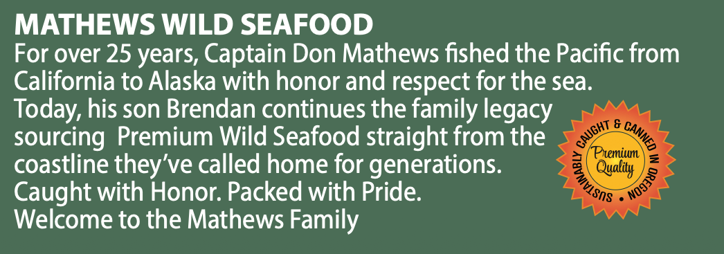 A Premium Can of Jalapeño & Garlic Albacore Tuna from Mathews Wild Seafood, Showcasing its bold, zesty flavor blend. Wild-caught and canned on the Oregon Coast for exceptional quality.